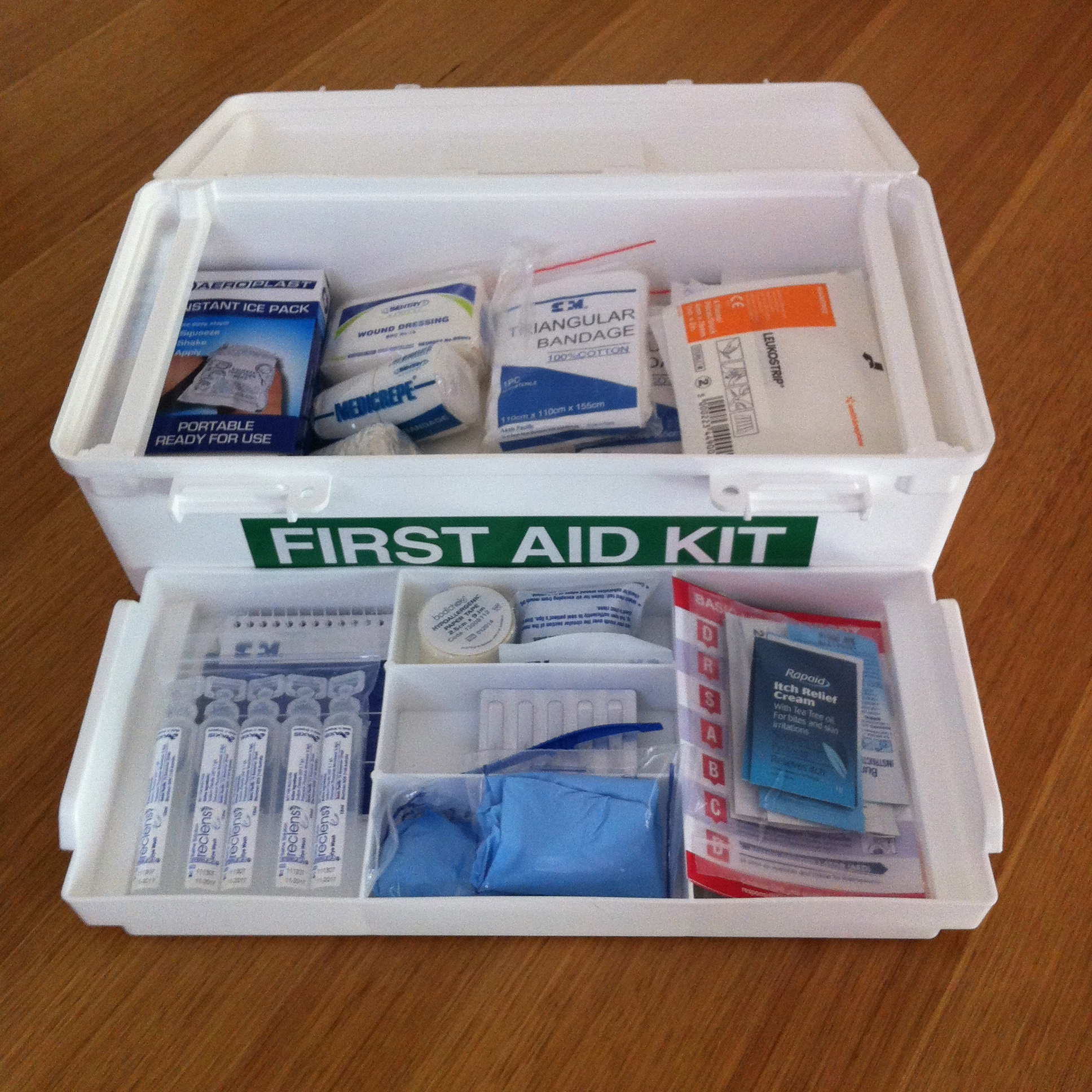 We have upgraded our first aid kit to the ‘off-road kit’ from the RACV, but we’ve seen similar ones in BCF and Rays.