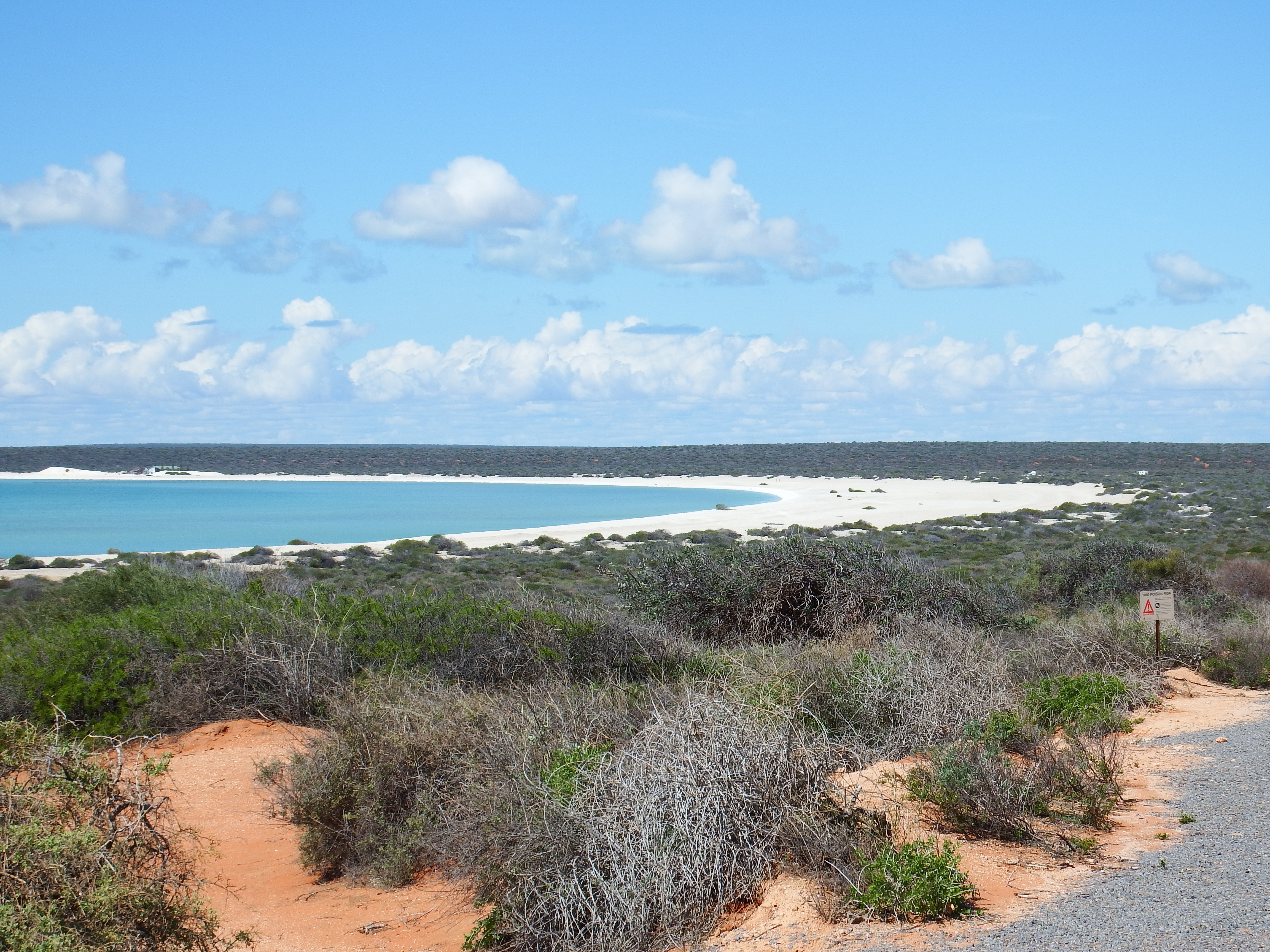The turn off from the North West Coastal Highway neat the Overlander Roadhouse onto the Denham-Hamelin Road is the start of the Shark Bay World Heritage Drive.